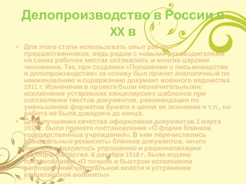 Слайд 24Делопроизводство в России в XX в
