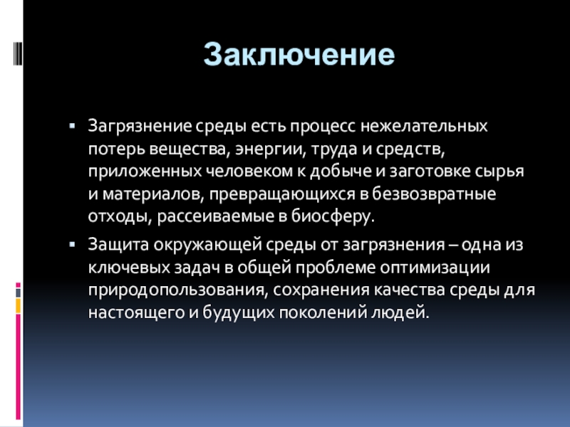 Загрязнение среды есть процесс нежелательных потерь вещества, энергии, труда и средств,