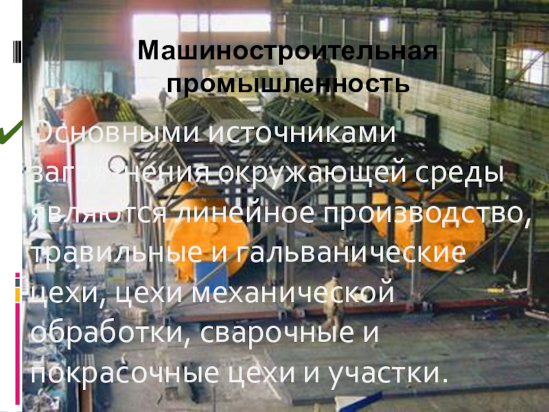 гальванические цехи, цехи механической обработки, сварочные и покрасочные цехи и участки.