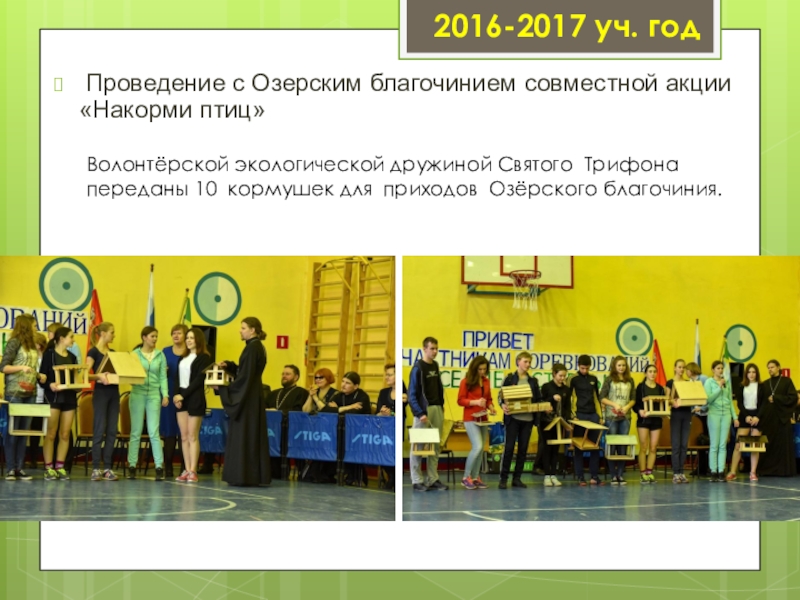 Волонтёрской экологической дружиной Святого Трифона переданы 10 кормушек для приходов Озёрского благочиния.