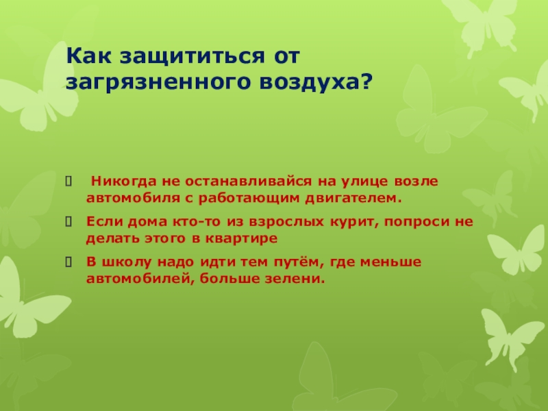 В школу надо идти тем путём, где меньше автомобилей, больше зелени.