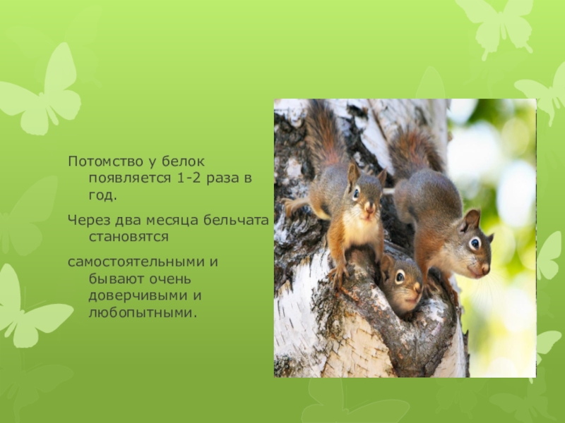 Слайд 25Потомство у белок появляется 1-2 раза в год.