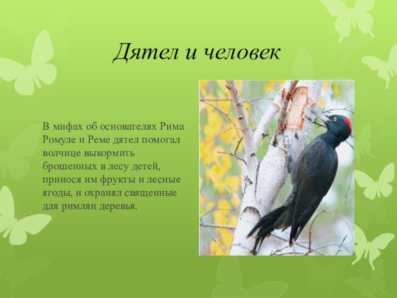 помогал волчице выкормить брошенных в лесу детей, принося им фрукты и лесные ягоды, и охранял священные для римлян деревья.