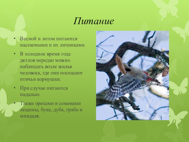 дятлов нередко можно наблюдать возле жилья человека, где они посещают птичьи кормушки.