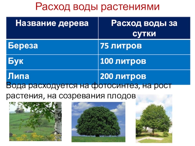 Вода расходуется на фотосинтез, на рост растения, на созревания