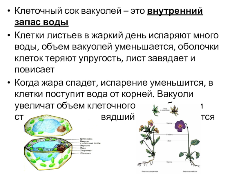 Слайд 4Клеточный сок вакуолей – это внутренний запас воды