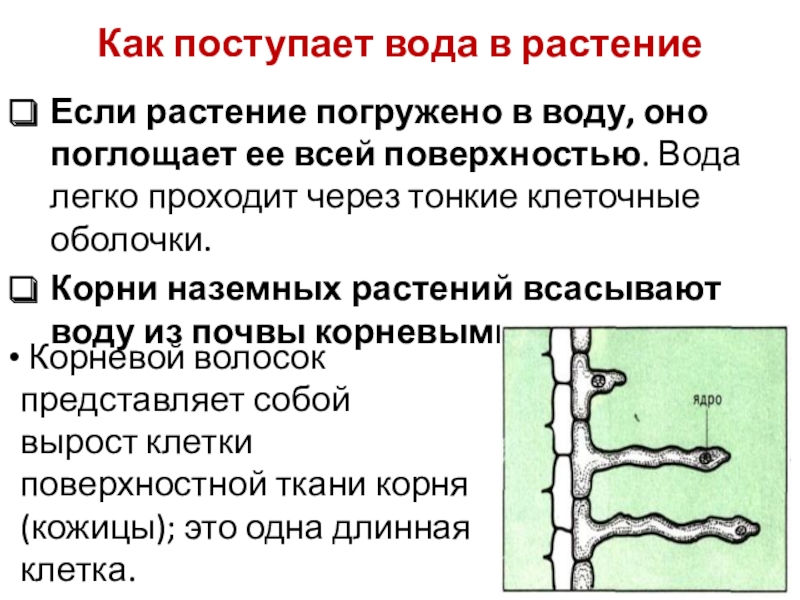 ее всей поверхностью. Вода легко проходит через тонкие клеточные оболочки.