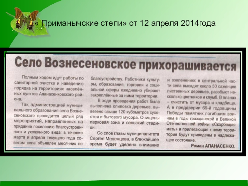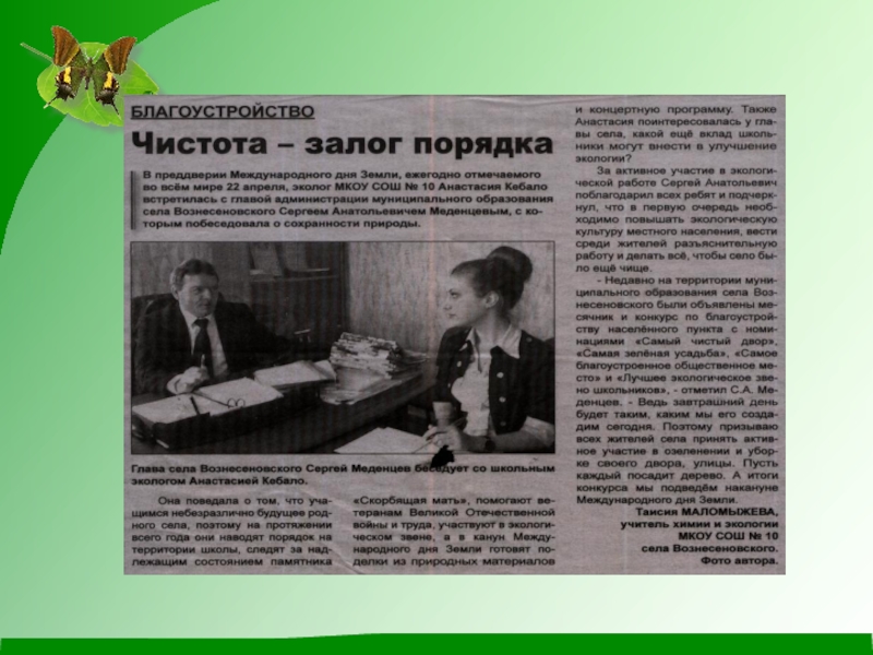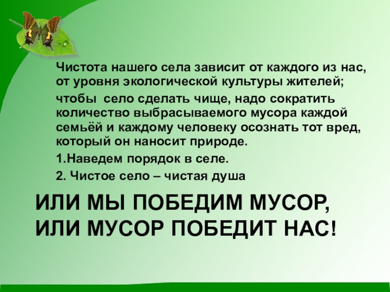 на тему «Чистое село – чистая душа».