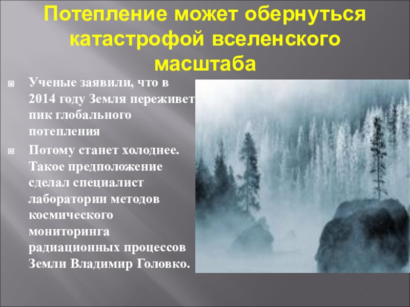 Слайд 16Потепление может обернуться катастрофой вселенского масштаба