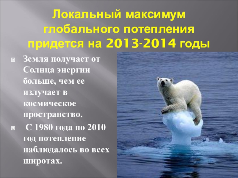 Слайд 3Локальный максимум глобального потепления придется на 2013-2014 годы