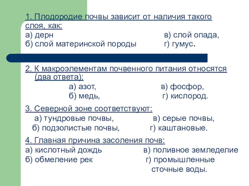2. К макроэлементам почвенного питания относятся (два ответа):
