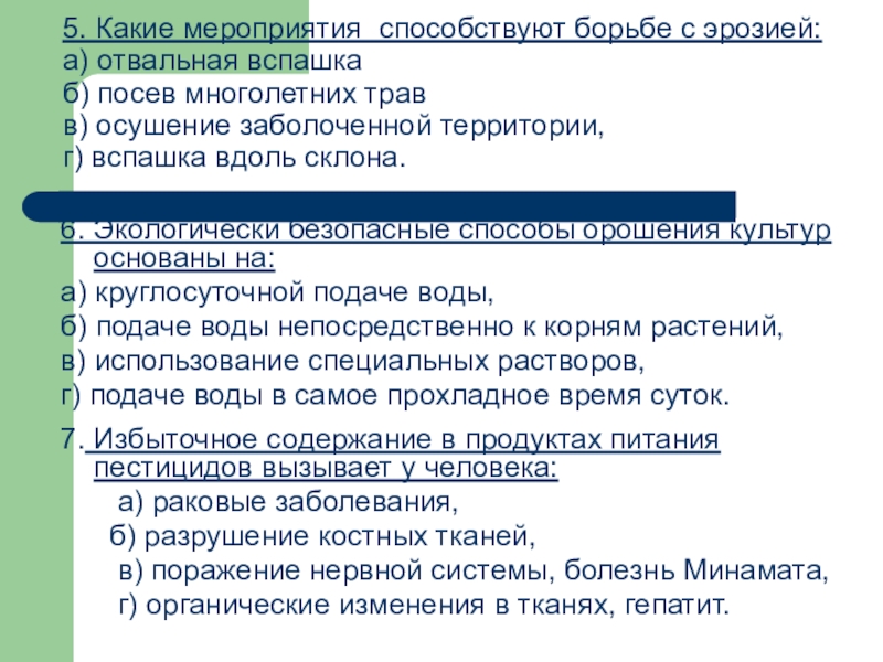 6. Экологически безопасные способы орошения культур основаны на: