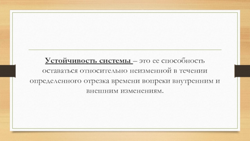 Слайд 20Устойчивость системы – это ее способность оставаться относительно неизменной в течении