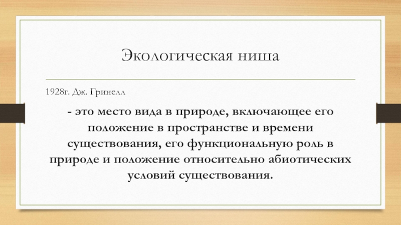 положение в пространстве и времени существования, его функциональную роль в природе и положение относительно абиотических условий существования.