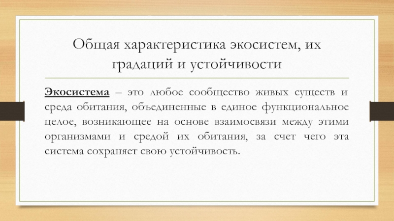 Слайд 18Общая характеристика экосистем, их градаций и устойчивости