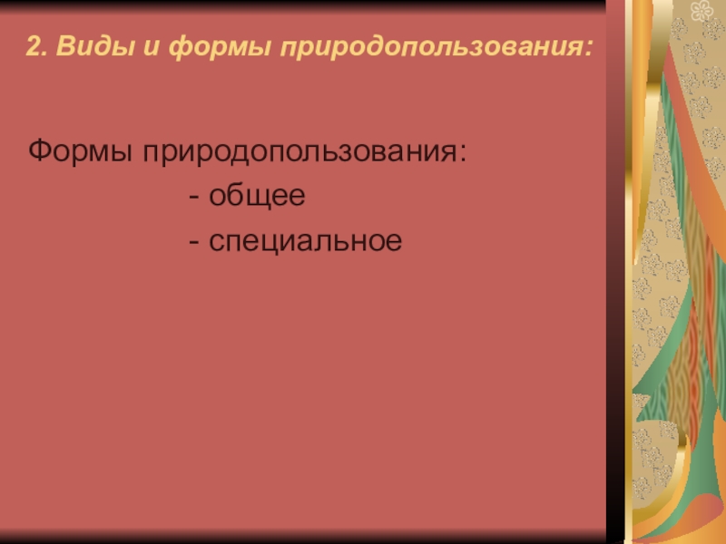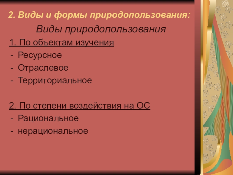 2) Виды и формы природопользования;