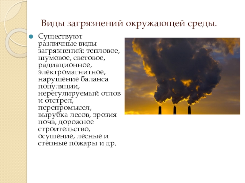 Слайд 5Виды загрязнений окружающей среды.