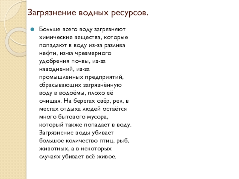 Слайд 8Загрязнение водных ресурсов.