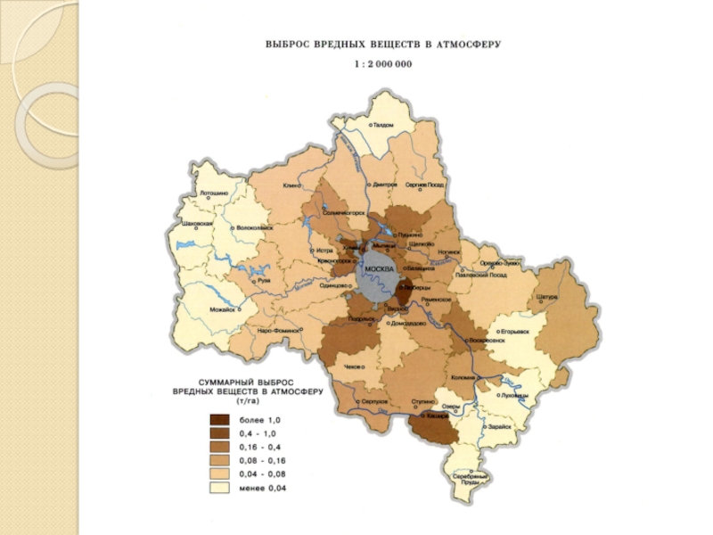 Слайд 12Загрязнение атмосферы в Московской области.