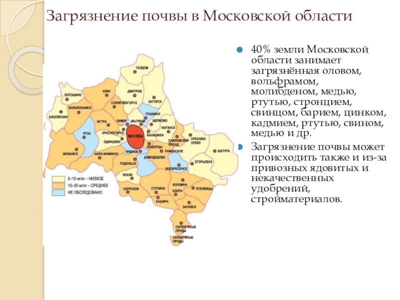 Слайд 7Загрязнение почвы в Московской области