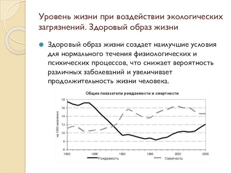 Слайд 16Уровень жизни при воздействии экологических загрязнений. Здоровый образ жизни