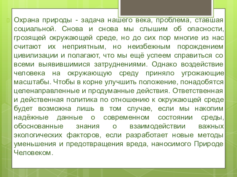 Презентация, доклад по экологии: Охрана окружающей среды