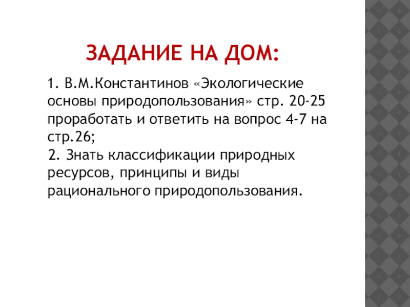 1. В.М.Константинов «Экологические основы природопользования» стр.