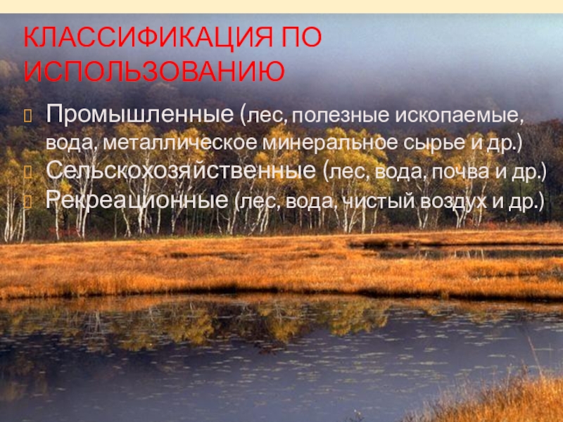 Промышленные (лес, полезные ископаемые, вода, металлическое минеральное сырье и