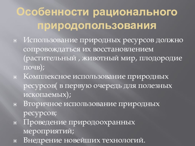 Рациональное природопользование обеспечивает: комплексное полезное использование изъятых у природы