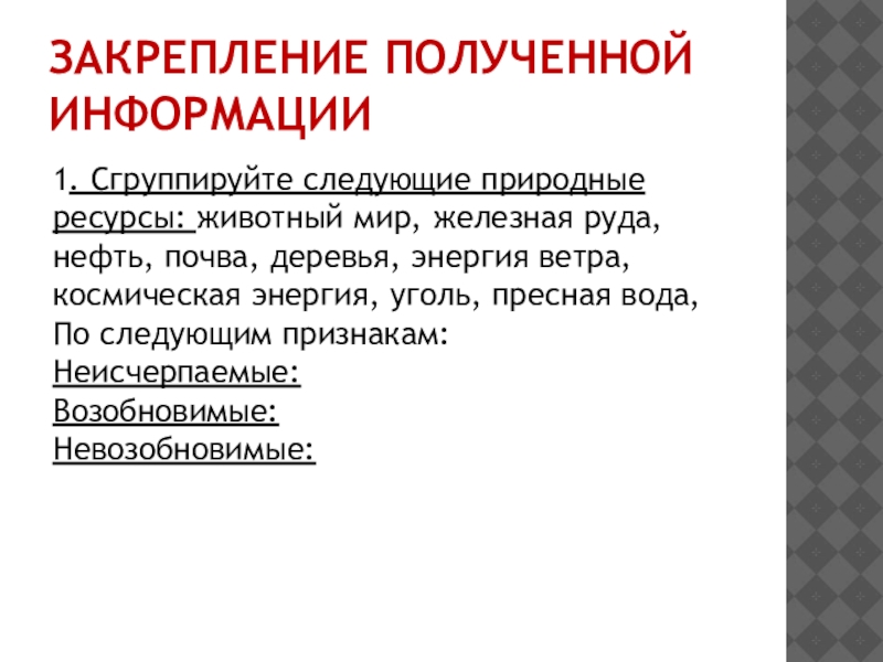 2. Знать классификации природных ресурсов, принципы и виды рационального природопользования.