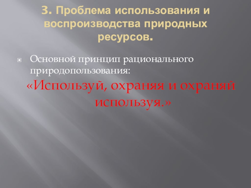 Слайд 203. Проблема использования и воспроизводства природных ресурсов.