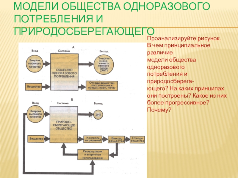 Слайд 28Модели общества одноразового потребления и природосберегающего