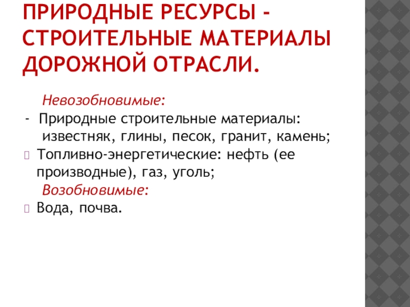 Слайд 16Природные ресурсы - строительные материалы дорожной отрасли.