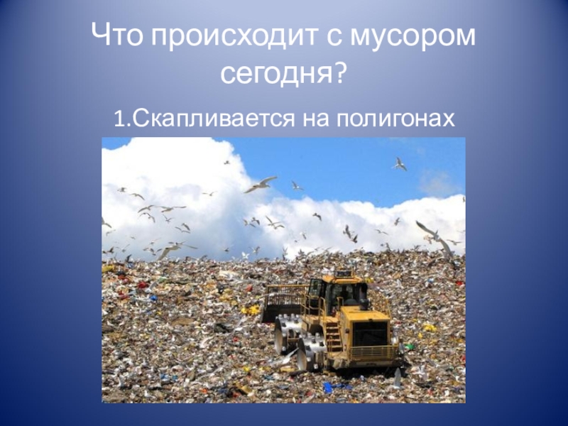 Что происходит с мусором сегодня?1.Скапливается на полигонах