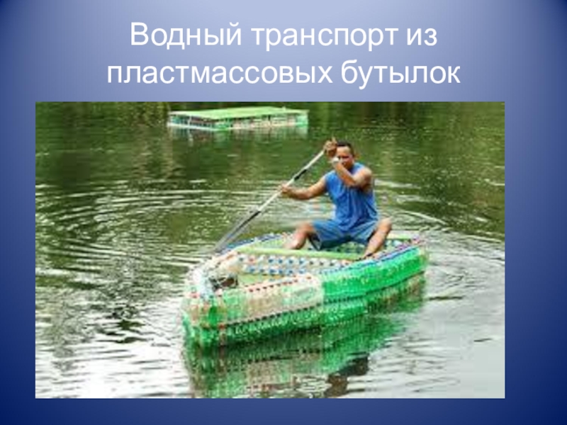 Слайд 34Водный транспорт из пластмассовых бутылок