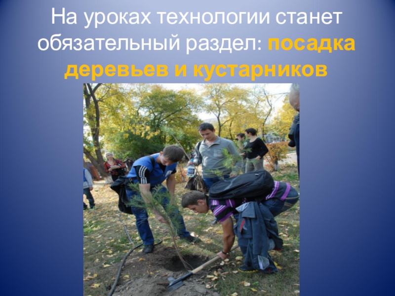 Слайд 23На уроках технологии станет обязательный раздел: посадка деревьев и кустарников