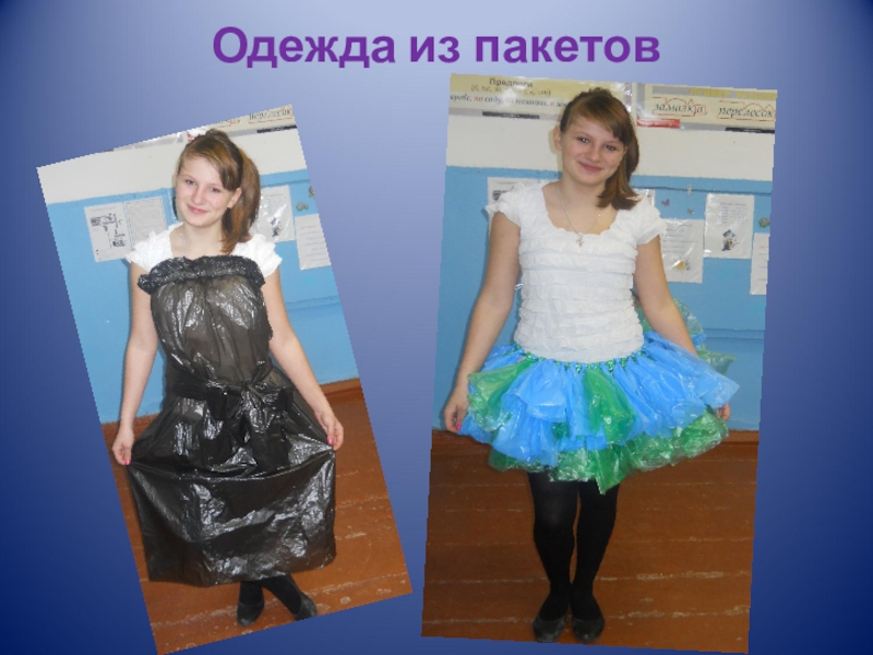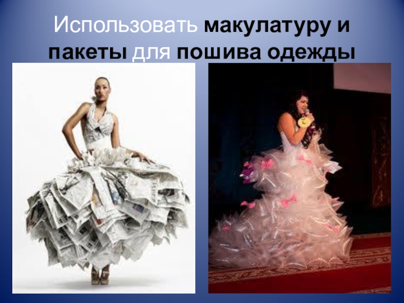 Слайд 31Использовать макулатуру и пакеты для пошива одежды