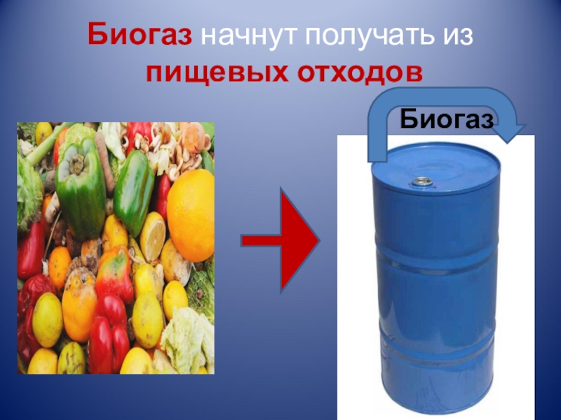 Слайд 28Биогаз начнут получать из пищевых отходов