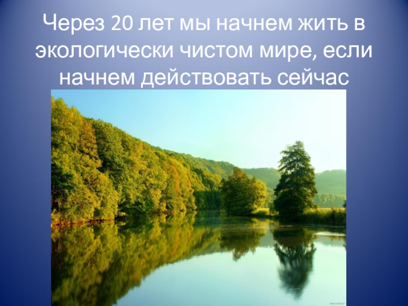 Слайд 19Через 20 лет мы начнем жить в экологически чистом мире, если