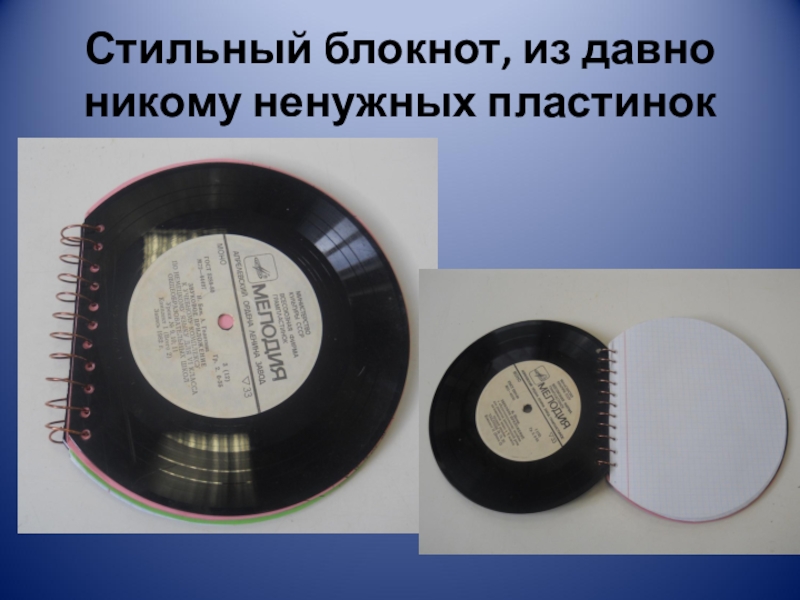 Слайд 44Стильный блокнот, из давно никому ненужных пластинок
