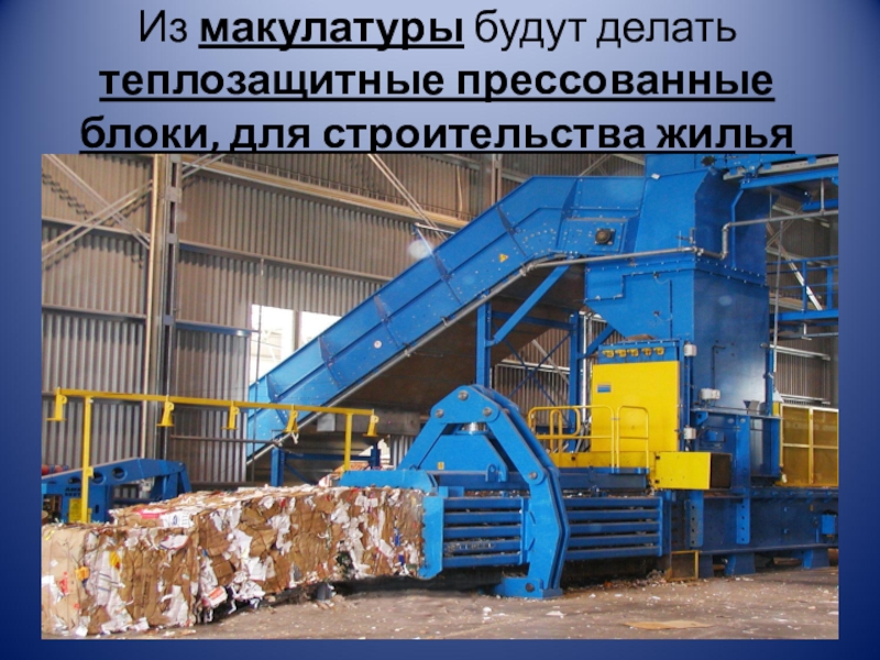 Слайд 30Из макулатуры будут делать теплозащитные прессованные блоки, для строительства жилья
