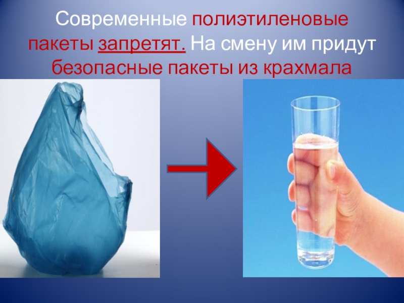 Слайд 32Современные полиэтиленовые пакеты запретят. На смену им придут безопасные пакеты из
