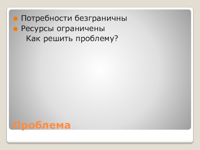 ПроблемаПотребности безграничныРесурсы ограничены  Как решить проблему?