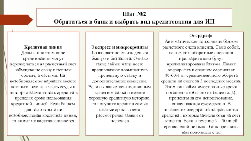 Автоматическое пополнение банком расчетного счета клиента. Само собой, ваш счет и оборотные операции предварительно будут проанализированы банком. Лимит овердрафта в среднем составляет 40-60% от среднемесячного оборота средств на счете за 3 последних месяца. Этом тип займа имеет разные сроки погашения (обычно не более года), проценты за его использование, оплачиваются ежемесячно. В погашение овердрафта направляются средства , которые зачисляются на счет клиента. Если в течение 3—50 дней перечислений не было, банк предложит вам пополнить счет