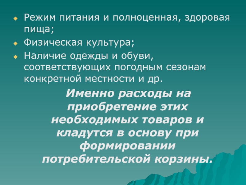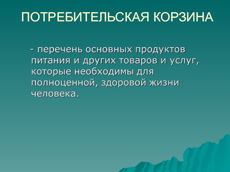 Слайд 6ПОТРЕБИТЕЛЬСКАЯ КОРЗИНА