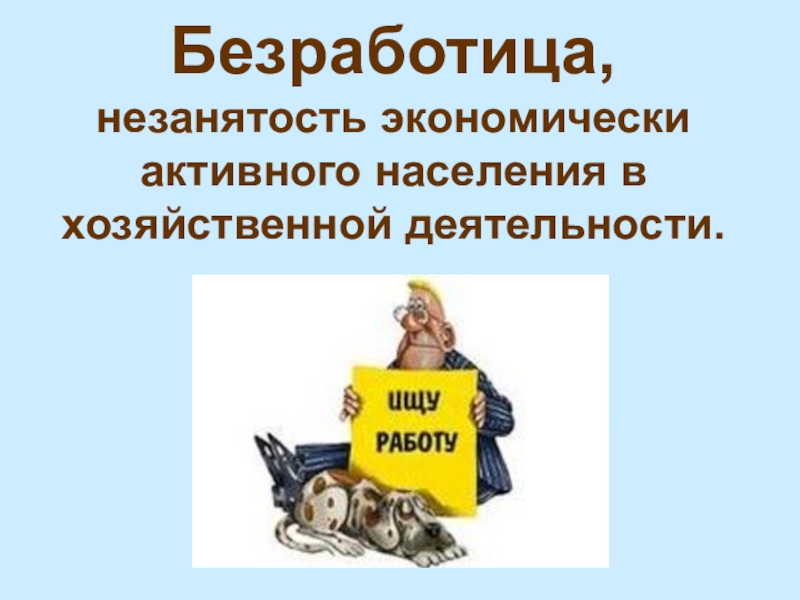 Безработица, незанятость экономически активного населения в хозяйственной деятельности.