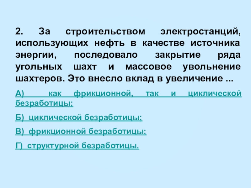 2. За строительством электростанций, использующих нефть в качестве источника энергии, последовало закрытие ряда угольных шахт и массовое