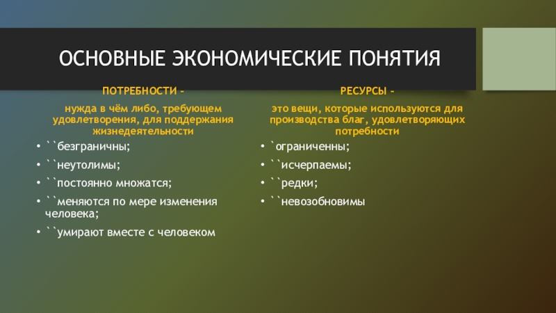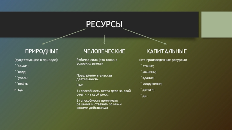 это вещи, которые используются для производства благ, удовлетворяющих потребности