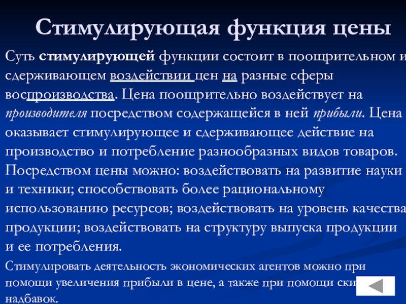 Слайд 223. Функция цены, выражающаяся в поощрительном или сдерживающем воздействии на производство