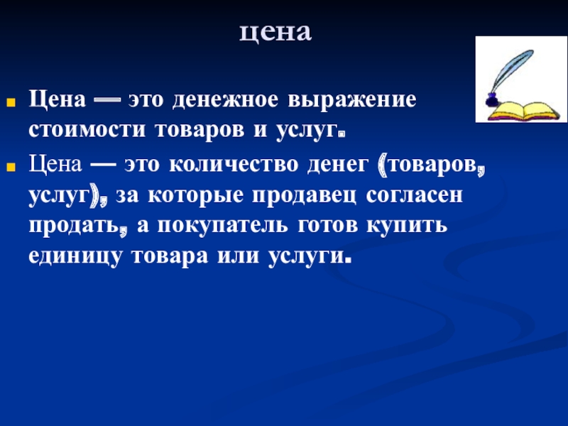 количество денег (товаров, услуг), за которые продавец согласен продать, а покупатель готов купить единицу товара или услуги.